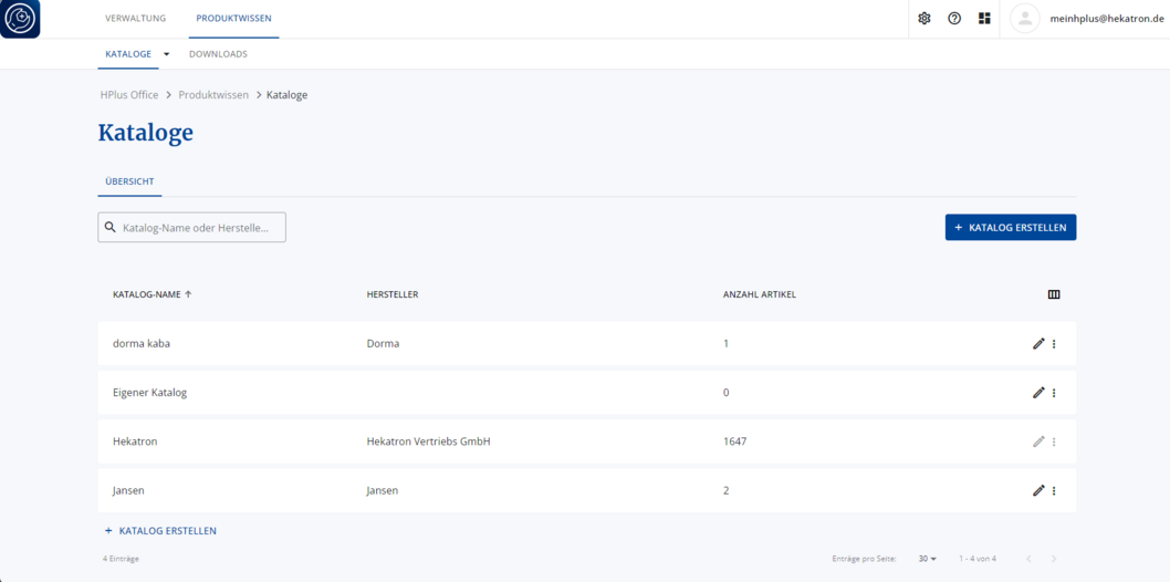 Sie haben die Möglichkeit, eigene Kataloge anzulegen oder bereits bestehende Kataloge anderer Hersteller hochzuladen und jederzeit anzupassen, zu ergänzen oder zu erweitern.