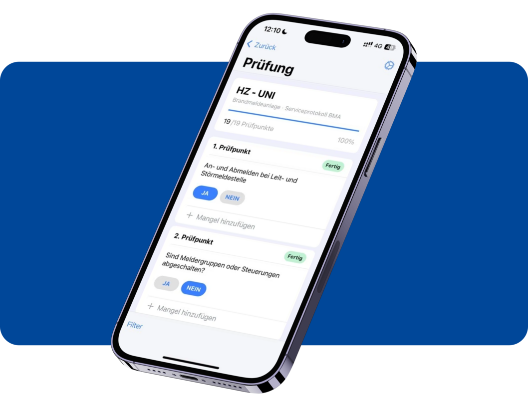 Prüfergebnisse, Mängel, Checklisten und Messdaten werden effizient und ohne viel Tippen ausgefüllt und direkt mit dem Bericht synchronisiert.